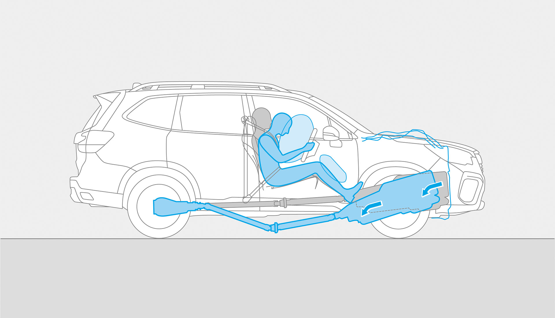If a severe frontal collision occurs, the Boxer engine will slide below the cabin – not through it. Its rearward movement and contact with the road surface also absorbs more impact energy, which contributes to the crumple zone action and further reduces the risk of injury.
