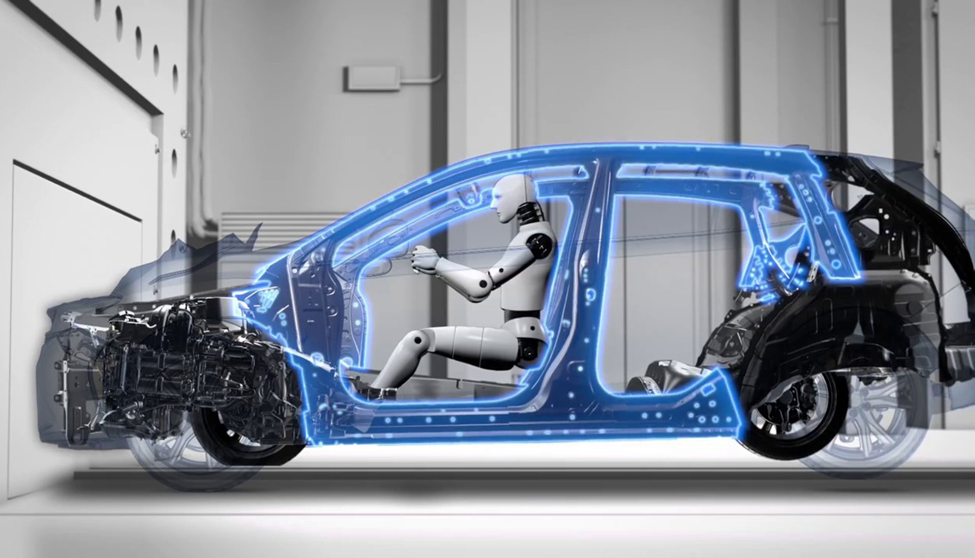 Ring-shaped reinforcement frames form a hardened skeleton from roof to door and pillar to floor. This creates a safe area within the cabin, diverting the force of any impact away from passengers. If there’s a crash, the low-mounted position of the engine makes it more likely to slide safely beneath the floor – keeping passengers out of harm’s way. It’s a bit like a roll cage in a motor sport vehicle.