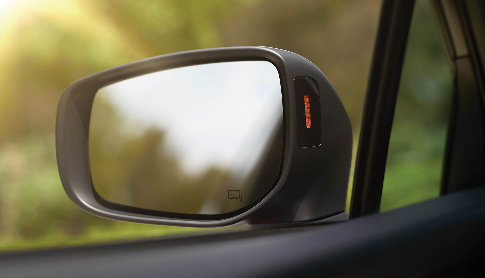 If a vehicle is in your blind spot, a light symbol in your side mirror lights up – on either side of the car – to let you know. If you’re changing lanes and a fast-approaching vehicle is behind you, a light symbol will warn you of its presence.